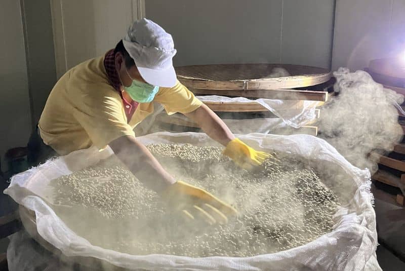 「製麴」、「翻麴」每天必做的工作,要求100%的發酵,才會有純天然高品質的醬油。(圖/李記醬油粉絲專頁 提供)